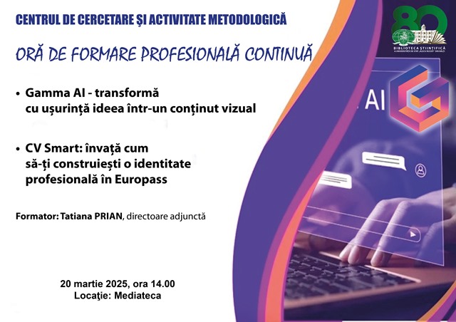 Dragi colegi, vă invităm să participați la ora de formare profesională continuă din luna martie. Subiectele vă vor ajuta să vă atingeți obiectivele profesionale.