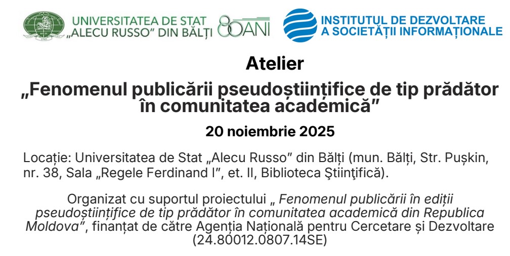 Institutul de Dezvoltare a Societăţii Informaţionale vă invită la Atelier „Fenomenul publicării pseudoștiin